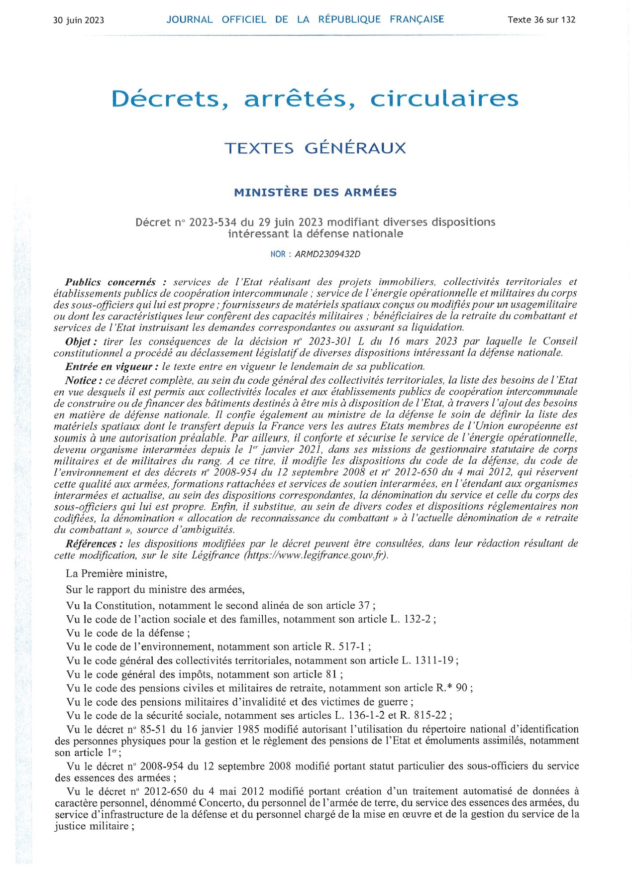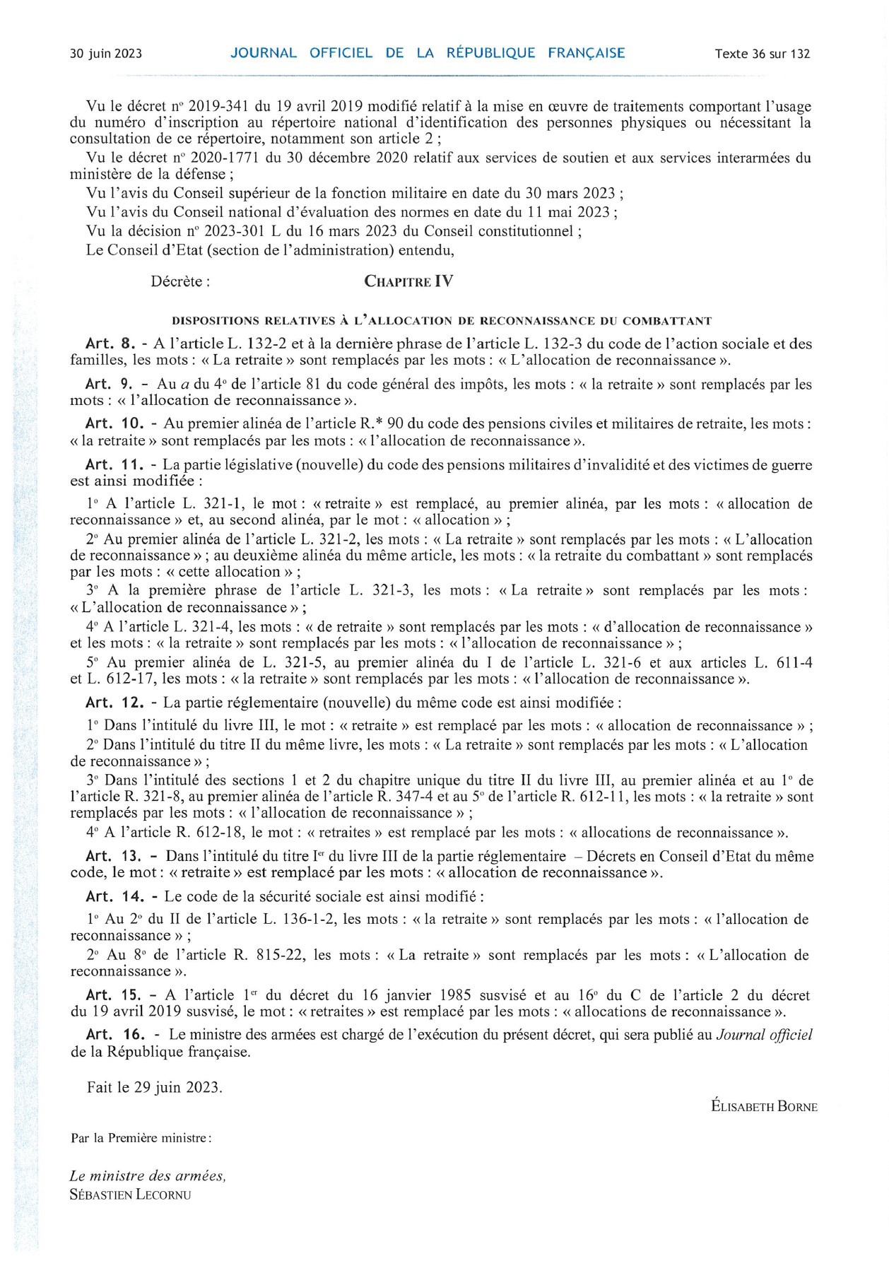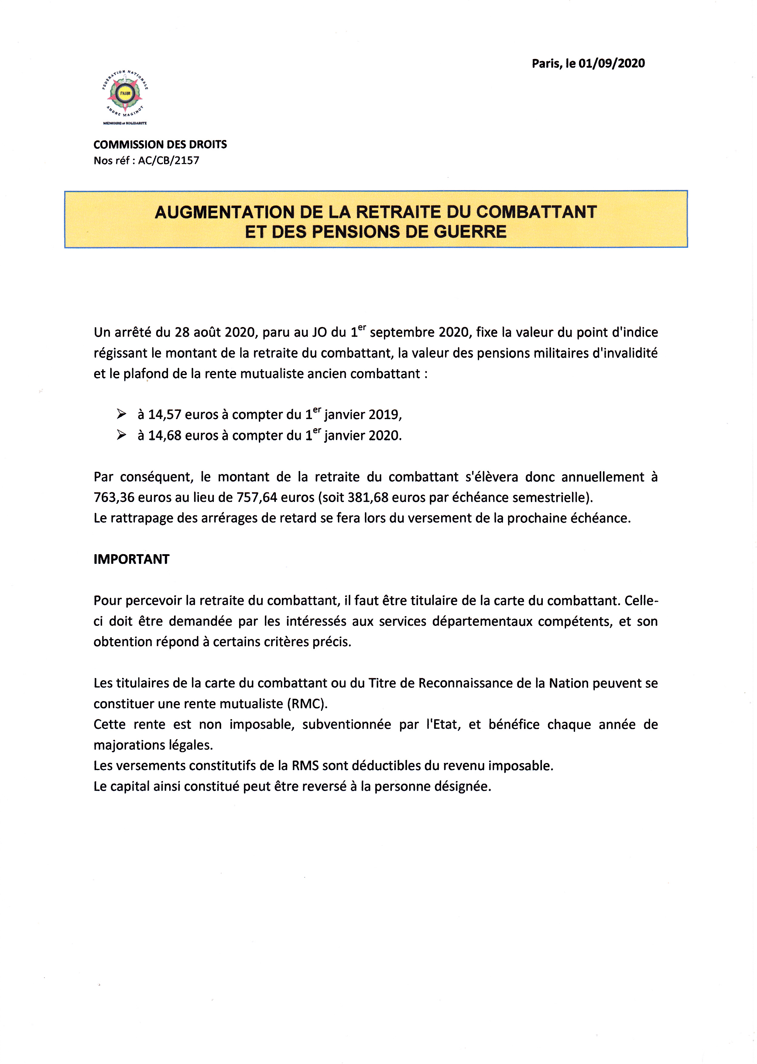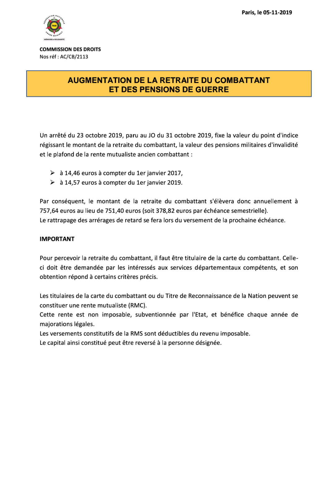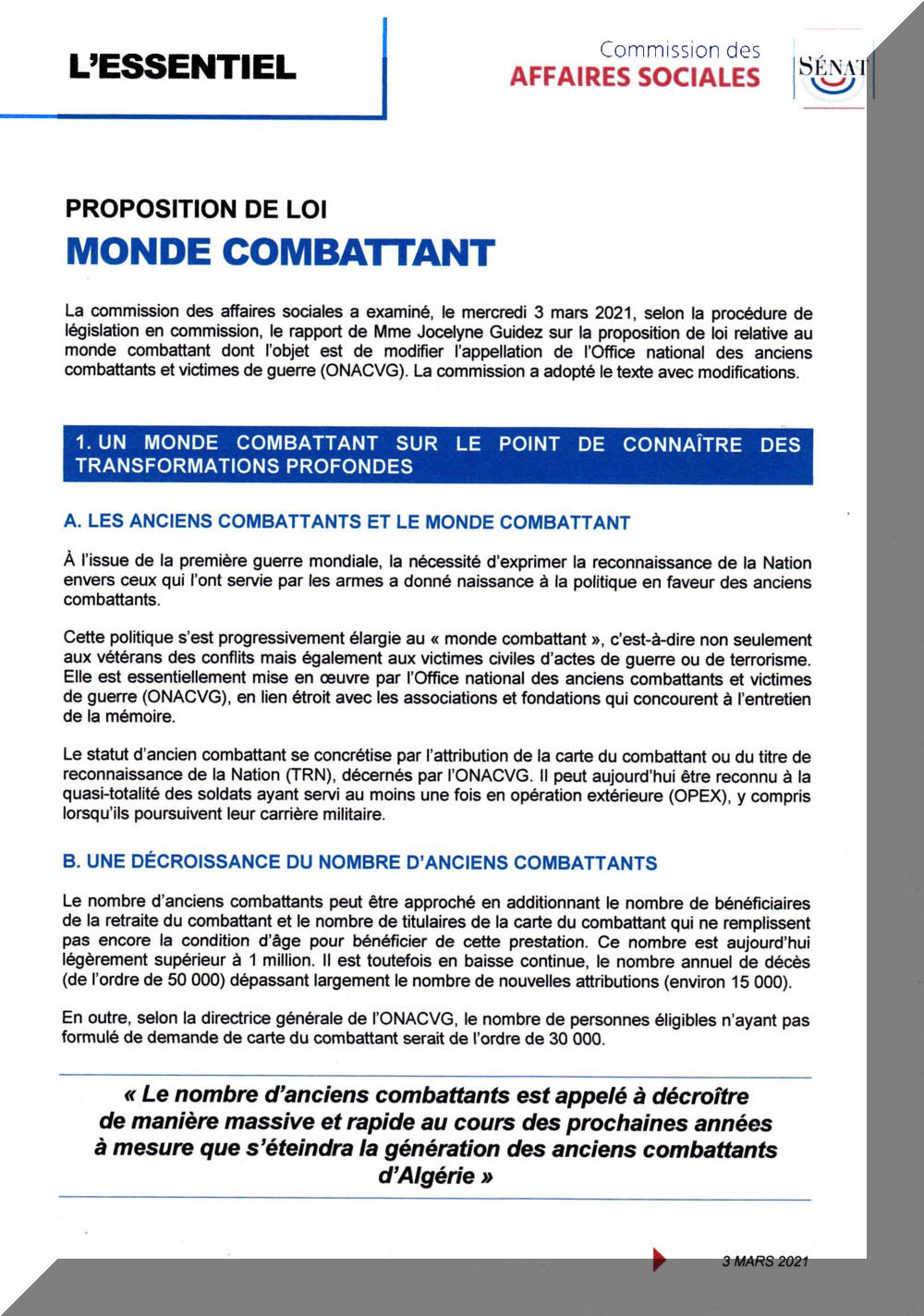 changement d'appellation "ANCIENS COMBATTANTS" en "MONDE COMBATTANT"