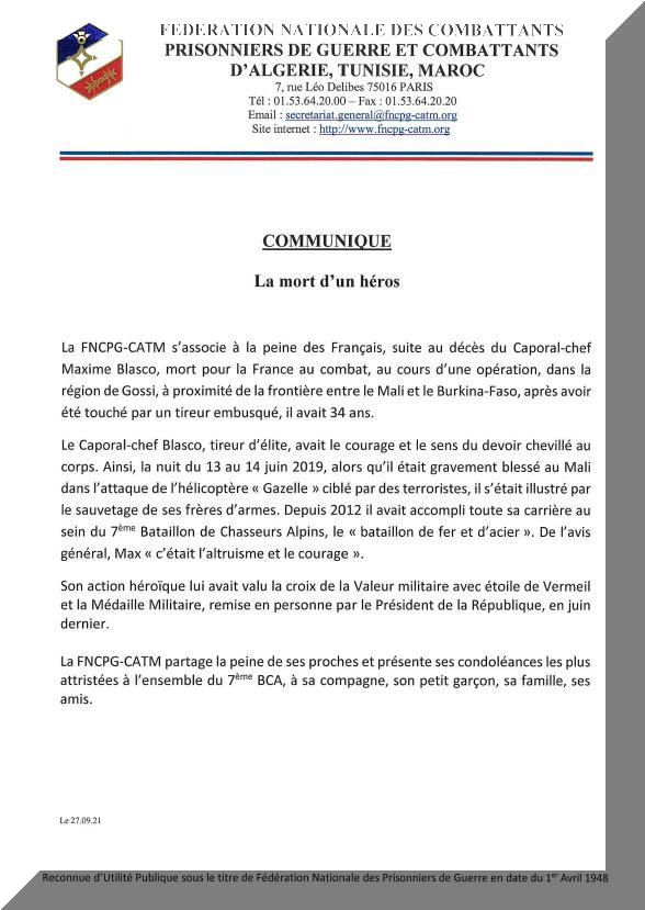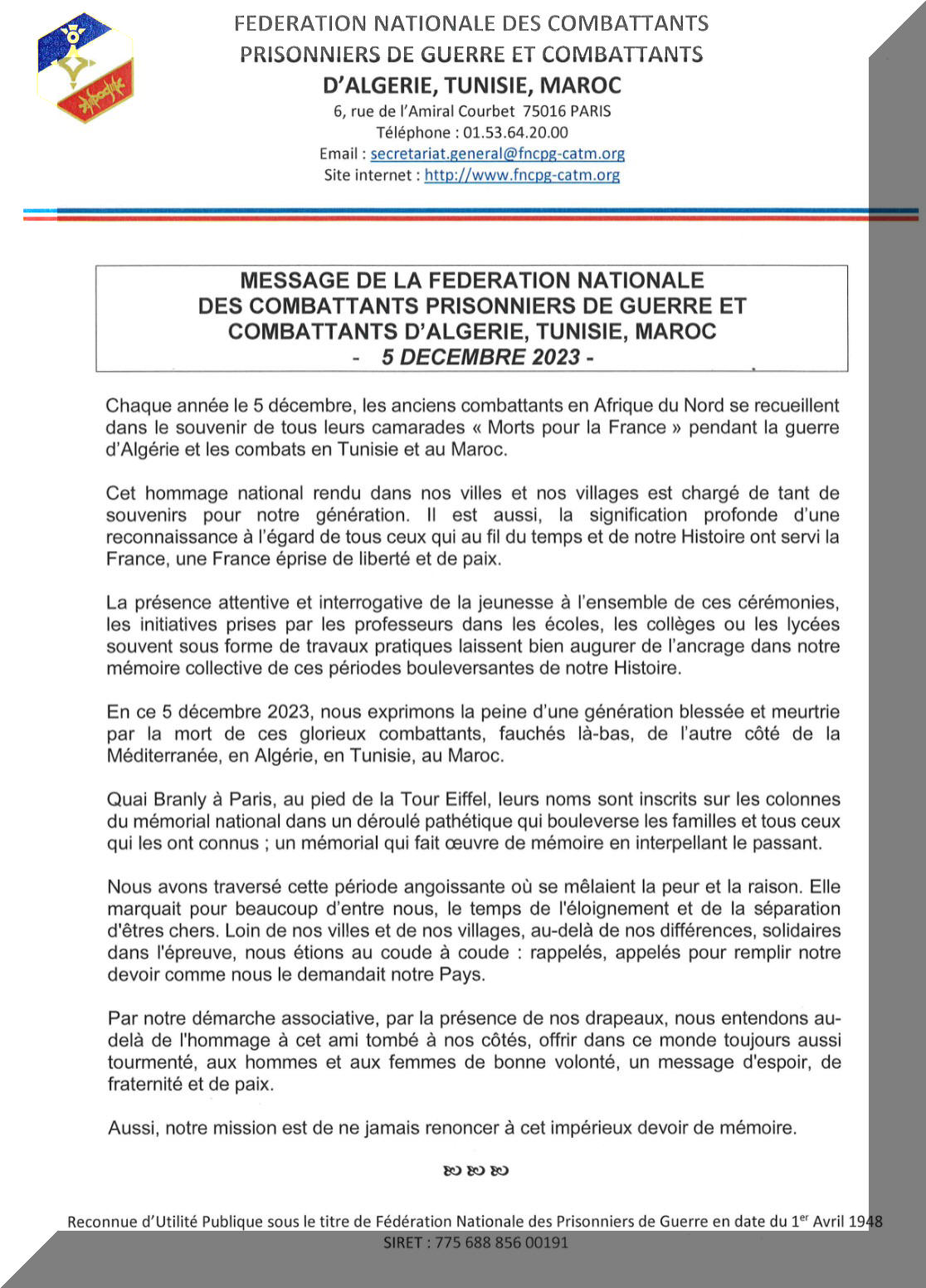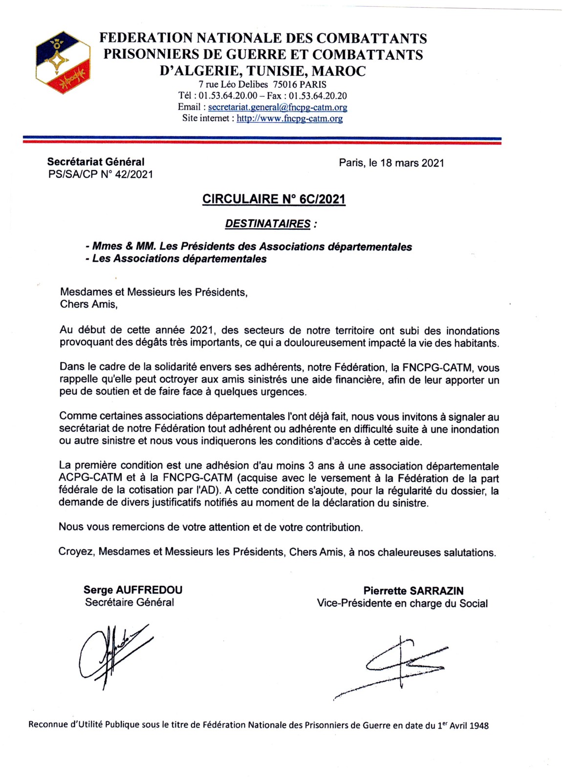 La F.N.C.P.G - C.A.T.M AIDE aux INONDATIONS (CLIQUEZ sur l'image pour l'agrandir)