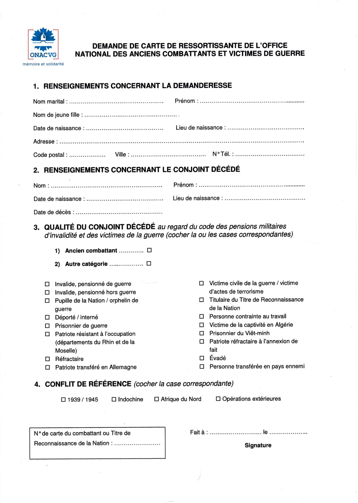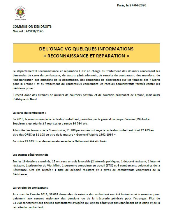 voir avec vos ONaCVG pour les imprimés de demande.
